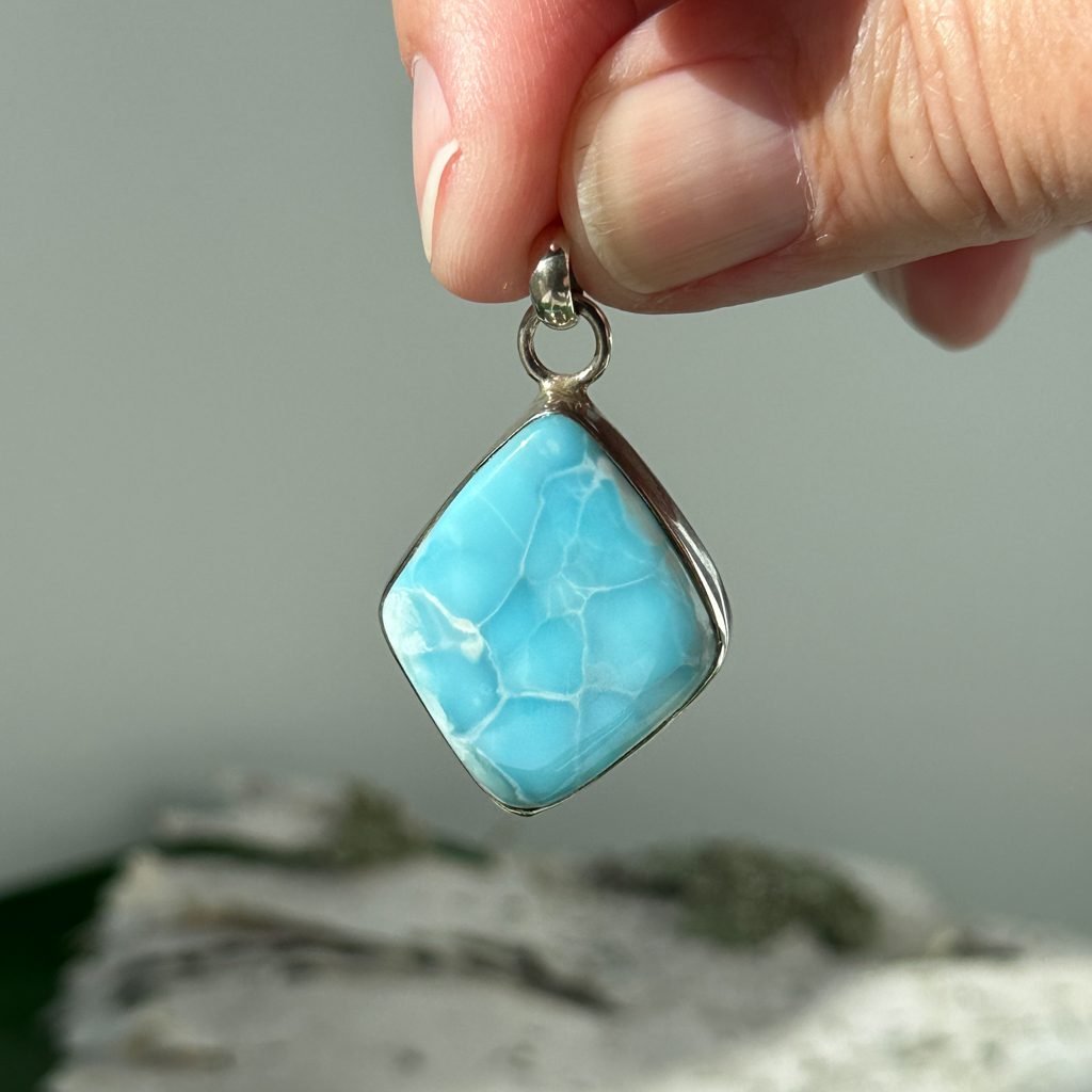 Larimar Sterling Silver Pendant from the Dominican Republic. A soothing stone for calm, compassion, and clear, loving communication.