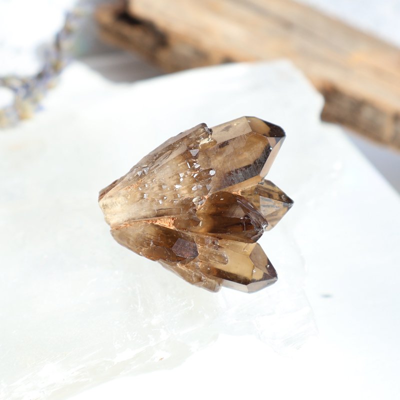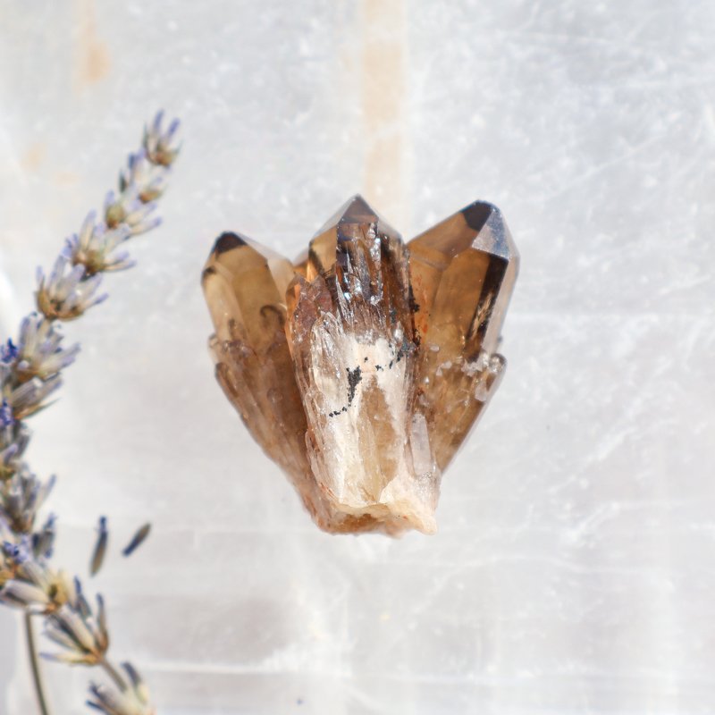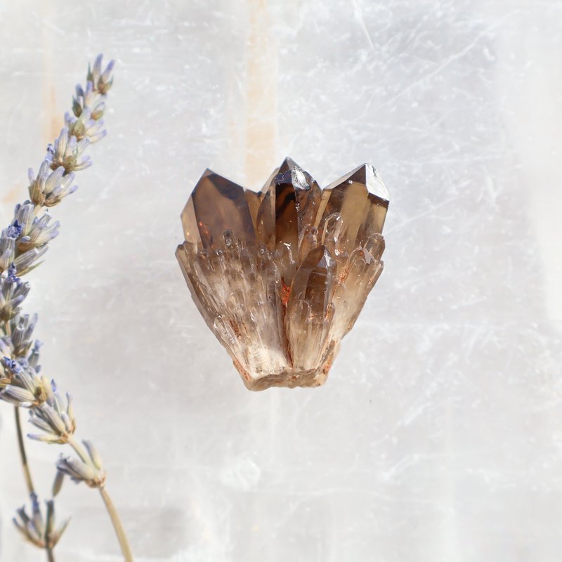 This Natural Kundalini Citrine from Luena, Katanga in the Democratic Republic of Congo carries a deep amber glow and striking layered formation. Known for its bold energy and distinctive stepped formation, Kundalini Citrine is one of the most visually unique Quartz varieties. This piece is a really sweet smaller cluster of 5 ‘main’ crystals, with smaller points cascading the sides, has a darker tone, and has internal white phantoms included.