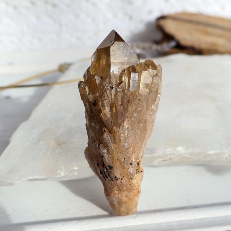 Kundalini Citrine is an unheated Quartz variety known for it main central crystal surrounded by smaller layered, stair-step growth pattern that forms as the crystal grows in phases, . These natural formations are highly sought after by collectors and energy practitioners alike. Often associated with manifestation and personal empowerment, this stone carries a bold, activating presence that supports confidence and aligned creation.