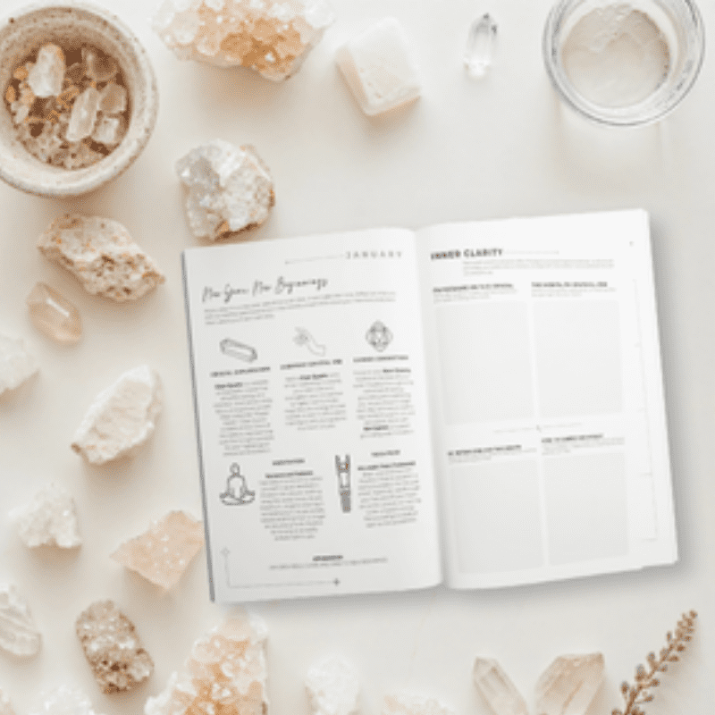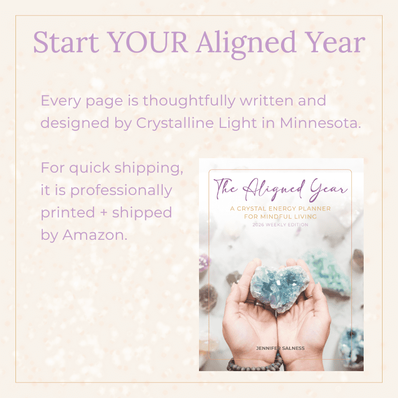 Since 2021, I’ve created an annual planner mixed with a crystal workbook and intention tracker. The Aligned Year is the newest incarnation (previously the Crystal Compass in 2025), filled with thoughtful updates and additions I know you’ll love.